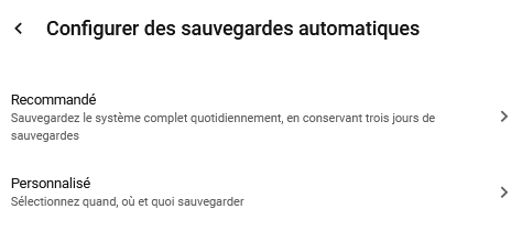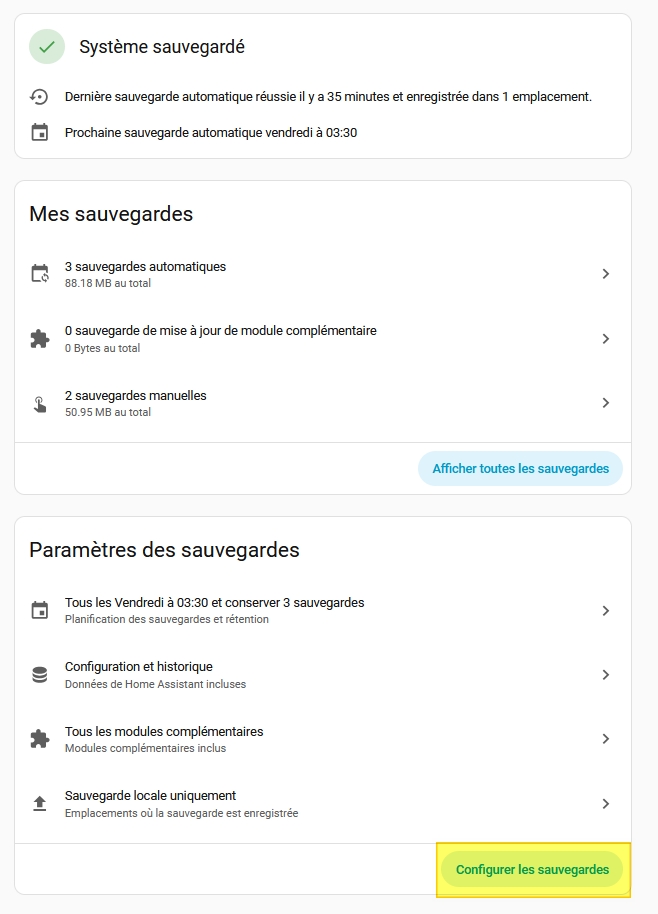 Rendez-vous dans Paramètres => Sauvegardes, cliquer sur Configurer les sauvegardes:
