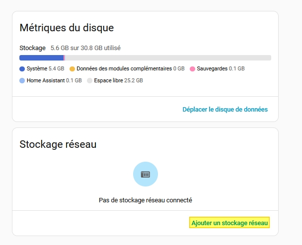 Le stockage réseau est bien listé: