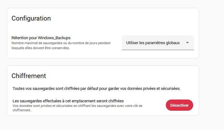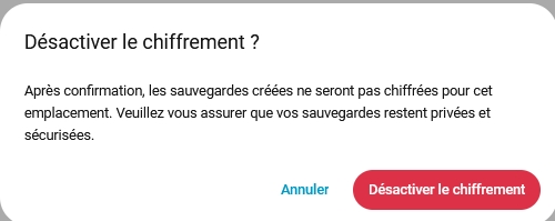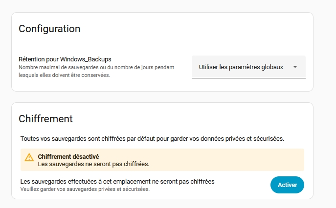 L'interface indique clairement si la sauvegarde est chiffrée ou non: