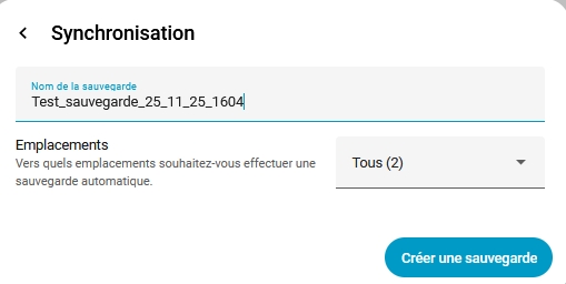 Indiquez un nom de sauvegarde et cliquer sur Créer une sauvegarde: